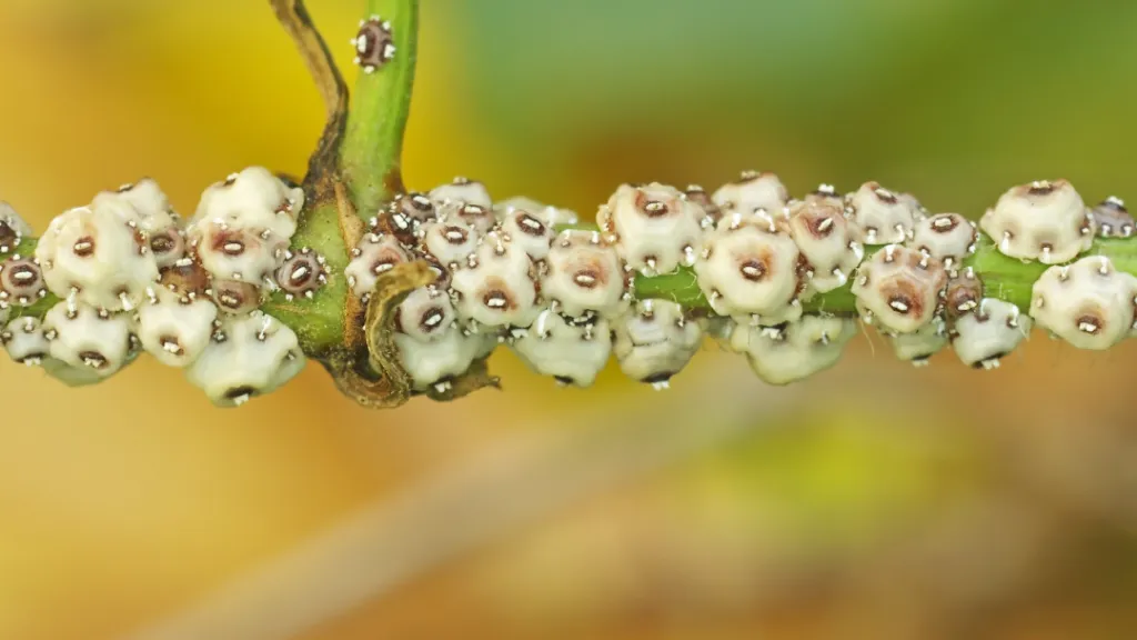 1. فلسهای نرم: مقیاسهای نرم مادهای مومی و محافظتی ترشح میکنند که بدن آنها را میپوشاند. این پوشش مومی به بدن حشره متصل نیست و به راحتی قابل جدا شدن است. مقیاسهای نرم معمولاً بزرگتر و گردتر هستند. نمونههایی از آنها شامل مقیاس پفکی و مقیاس نرم قهوهای هستند.