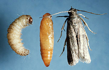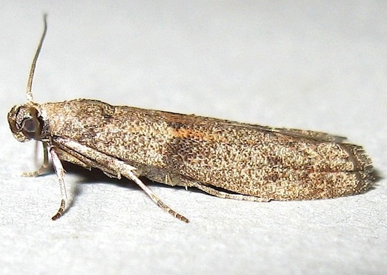 - ظاهر: شبپره بالغ کوچک و به رنگ کمرنگ است و طول بالهای آن حدود 15-20 میلیمتر (0.6-0.8 اینچ) است. بالهای آن معمولاً خاکستری-قهوهای لکهدار با نشانههای خاصی هستند. لاروها (کرمها) سفید کرمی با سر قهوهای هستند و هنگامی که بهطور کامل رشد میکنند، طول آنها به حدود 12-15 میلیمتر (0.5-0.6 اینچ) میرسد.